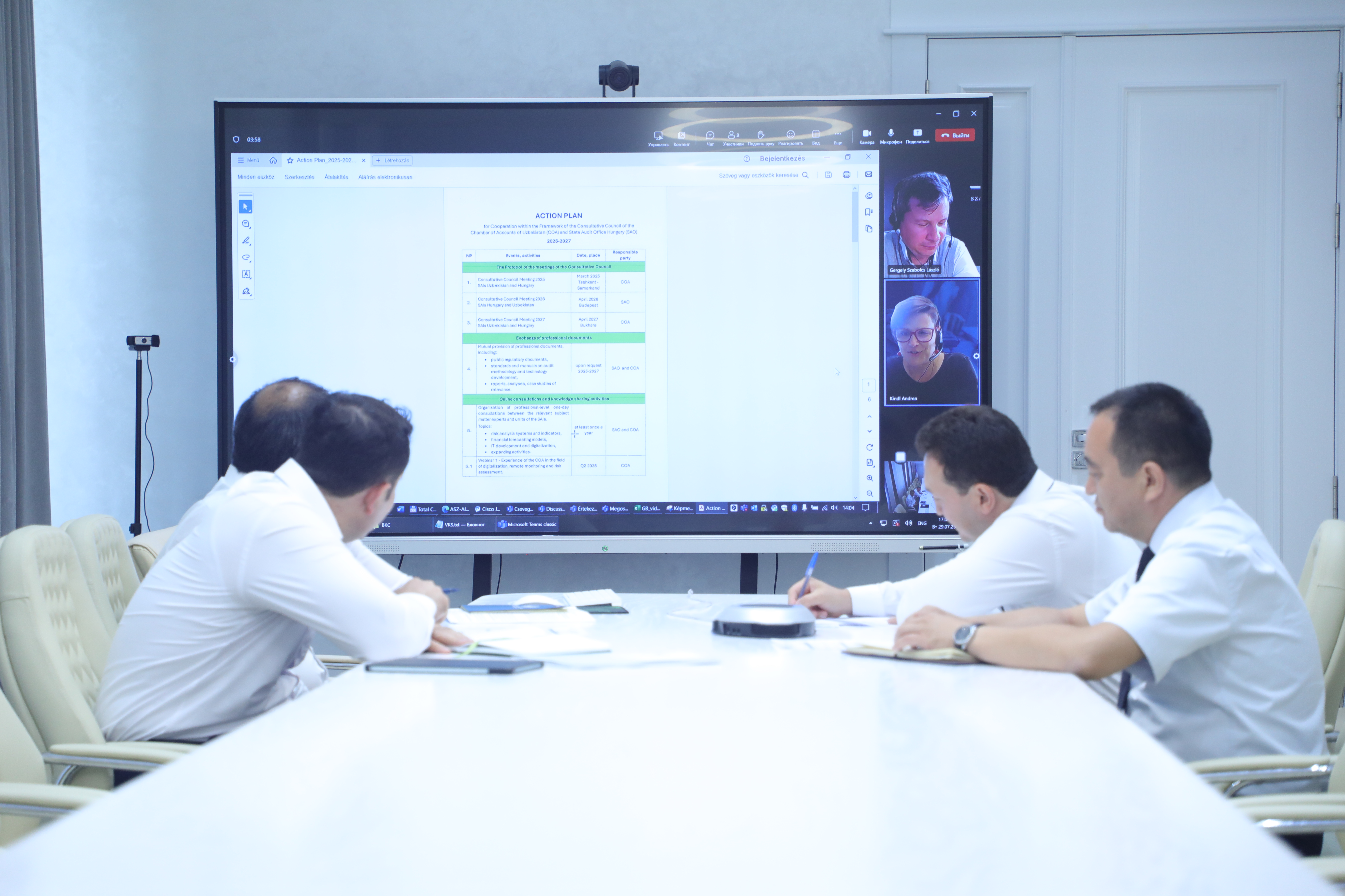 Ushbu Chora-tadbirlar rejasi doirasida 29 iyul' kuni O‘zbekiston – Vengriya Oliy audit organlari Ishchi guruhining navbatdagi uchrashuvi bo‘lib o‘tdi.