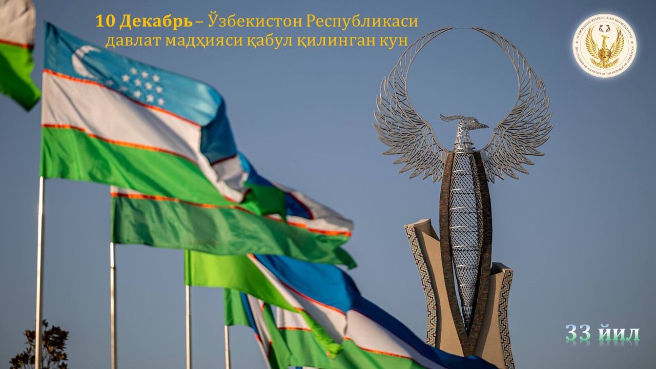 Hurmatli Yurtdoshlar! O‘zbekiston Respublikasi Hisob palatasi jamoasi nomidan davlatimiz ramzlaridan biri — O‘zbekiston Respublikasi Davlat Madhiyasining qabul qilinganiga 33 yil to‘lishi munosabati bilan barchangizni samimiy tabriklaymiz!